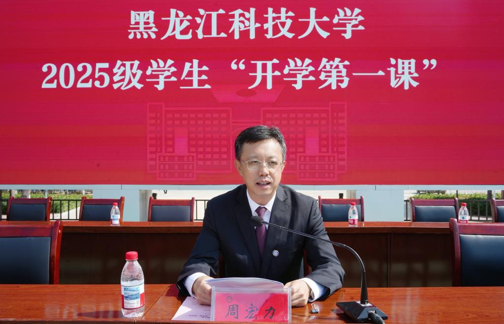 周宏力结合自身对时代发展、国家战略的深刻理解,围绕学校78年办学历史形成的“厚德博学 强吾兴邦”校训、“自强不息 创业创新”的办学精神,以“扬帆起航 逐梦前行——奋力书写为中国式现代化挺膺担当的青春篇章”为题,与2025级新生同上“开学第一课”。