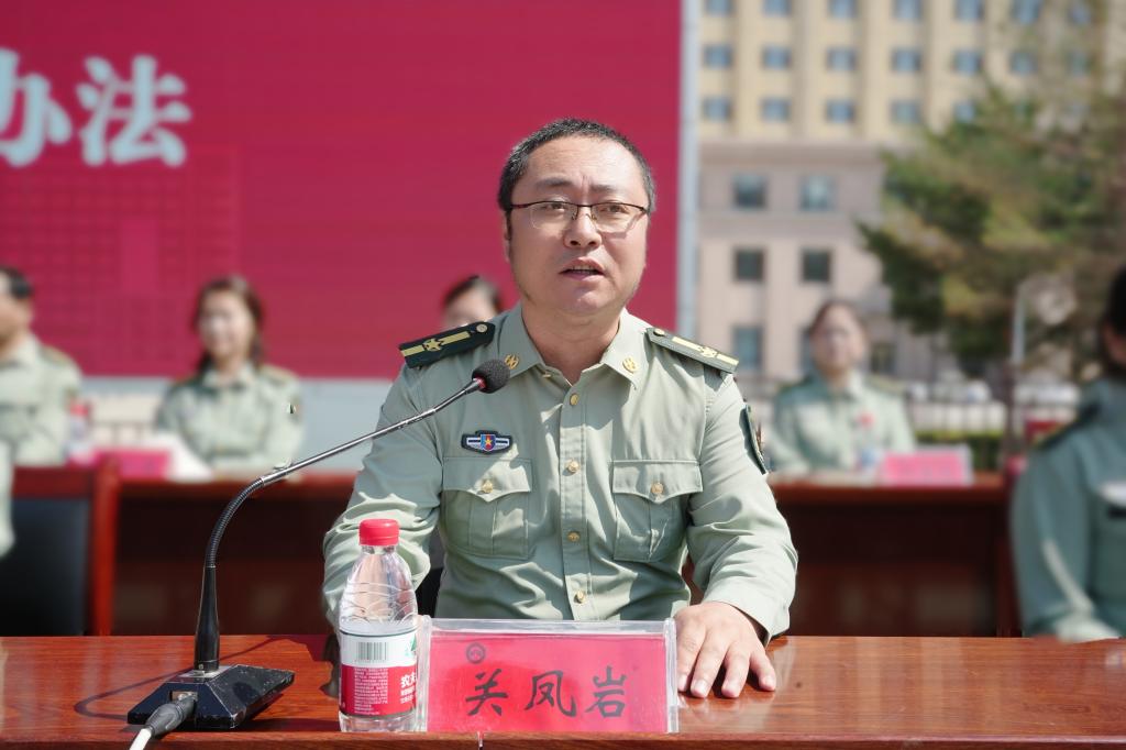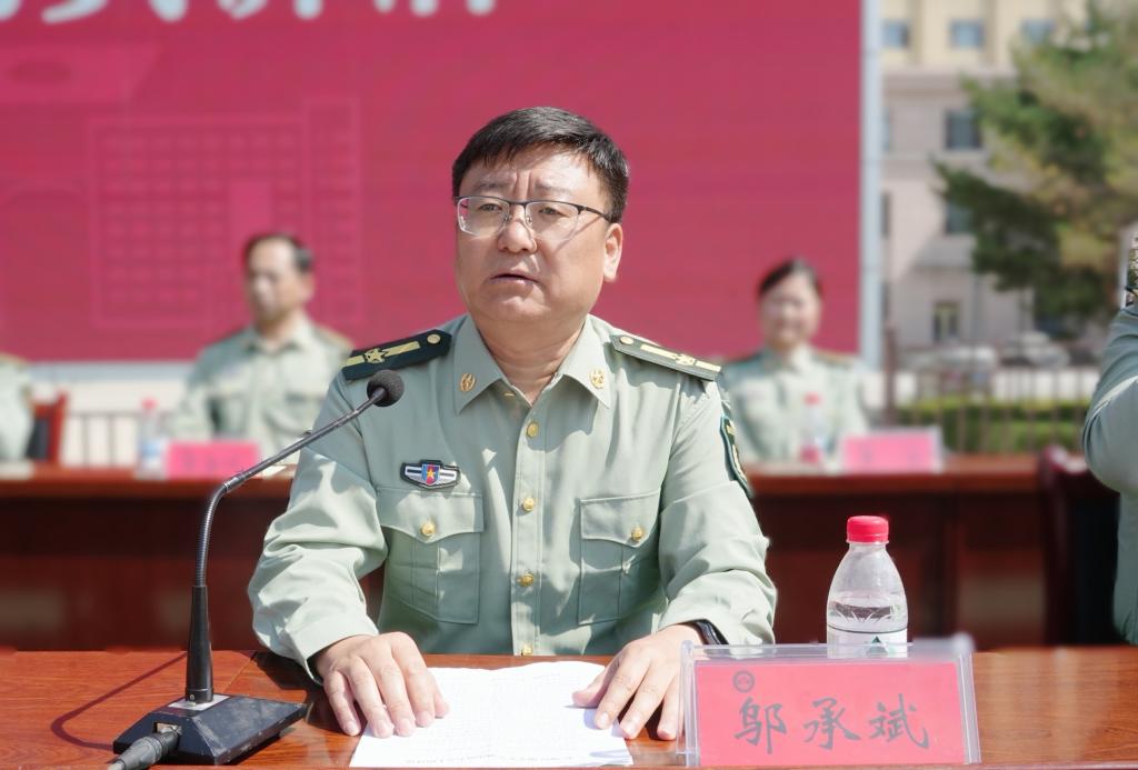 邬承斌作了动员讲话,他要求同学们铭记历史,增强国防意识,筑牢红色根基;激励同学们在军训中磨砺品行,锤炼青春本领;希望同学们在今后的大学生活中不断超越自我,书写青年担当,在实现强国建设、民族复兴伟业中书写属于自己的精彩人生。