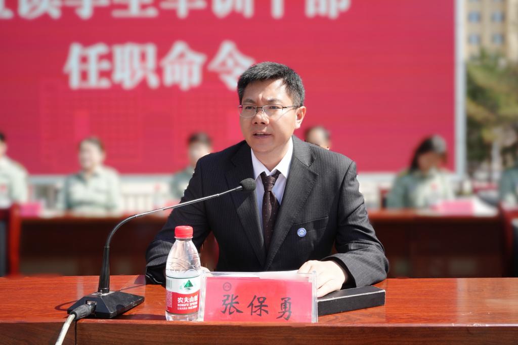 动员大会上,副校长张保勇宣布了《2025级学生军训干部任职命令》;军训旅副旅长关凤岩宣读了《学生军事技能训练管理办法》。