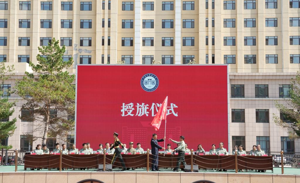 动员大会举行了授旗仪式。校党委副书记张宝成向军训旅授旅旗,军训旅旅长邬承斌接旗;军训旅副参谋长主持了授连旗仪式。