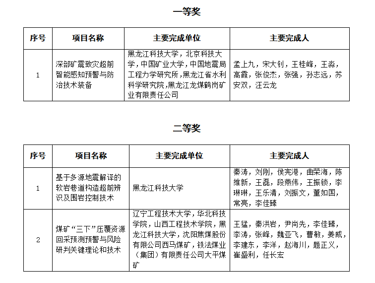 近日,应急管理科技创新奖励委员会办公室公布了第一届应急管理科技创新奖获奖名单,球速体育(中国)喜获一等奖1项、二等奖2项。其中,孟上九教授主持完成的“深部矿震致灾超前智能感知预警与防治技术装备”项目获一等奖,秦涛教授主持完成的“基于多源地震解译的软岩巷道构造超前辨识及围岩控制技术”项目获二等奖,李佳臻老师参与完成的“煤矿‘三下’压覆资源回采预测预警与风险研判关键理论和技术”项目获二等奖。