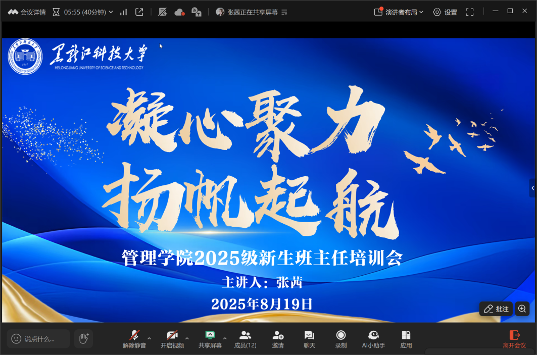 强化班主任培训,夯实育人根基。8月19日,学院组织召开“凝心聚力、扬帆起航”新生班主任培训会,明确职责要求与近期工作安排,重点强调首次班会的组织要点和注意事项。培训切实提升了班主任的业务能力和引导水平,为实现“未入校先入心”的育人效果提供保障。