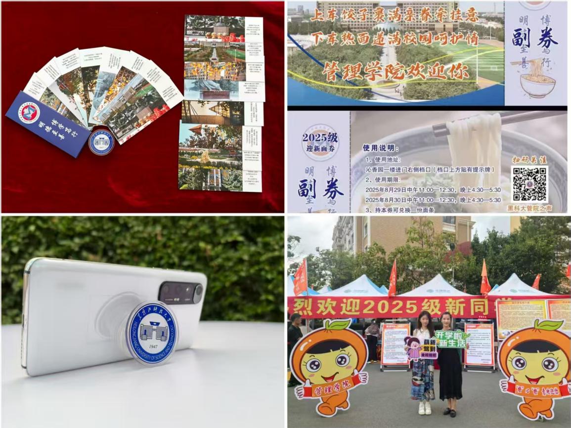 暖心伴手,礼寄情深润人心。学院吉祥物“管橙诚”亮相迎新现场,与精心设计的“三合一”伴手礼交相辉映。定制书签勉励勤学、手机支架承托梦想、暖心面券传递温暖,将文化寓意、实用功能与真情关怀融为一体,彰显学院育人温度与文化厚度。