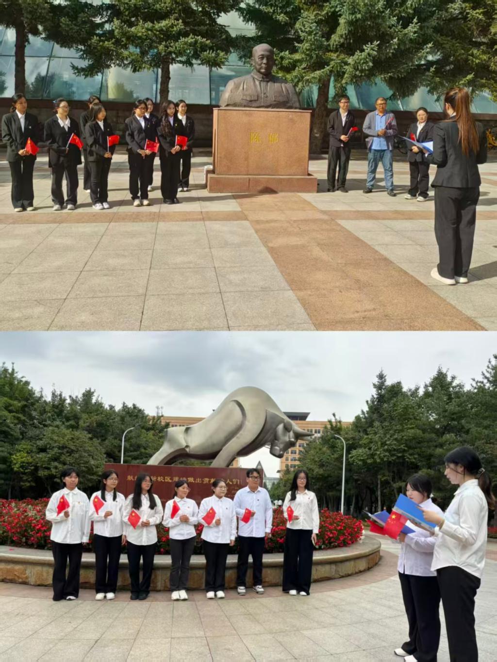 按照学院党委下发的主题党日活动方案,在各党支部书记的带领下,党员们佩戴党员徽章,挥舞着小红旗,整齐划一、依次参观。每到一处都驻足凝神,在沉浸式学习中深刻体悟“QSTY.COM精神”的丰富内涵,从校史脉络与精神内核中汲取奋进力量。集体合唱校歌《江畔朝阳》,表达着对学校这片沃土的深情厚爱,寄托着对学校未来蓬勃发展的美好期许。